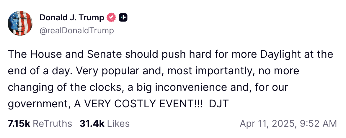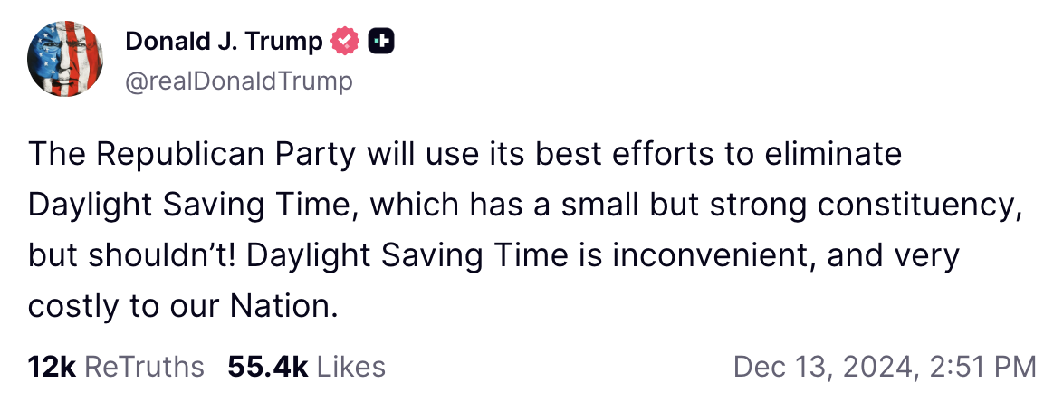 As president-elect in December of 2024, Trump posted a somewhat controversial statement on Truth Social… controversial, as he seemed to be backing a permanent Standard Time.