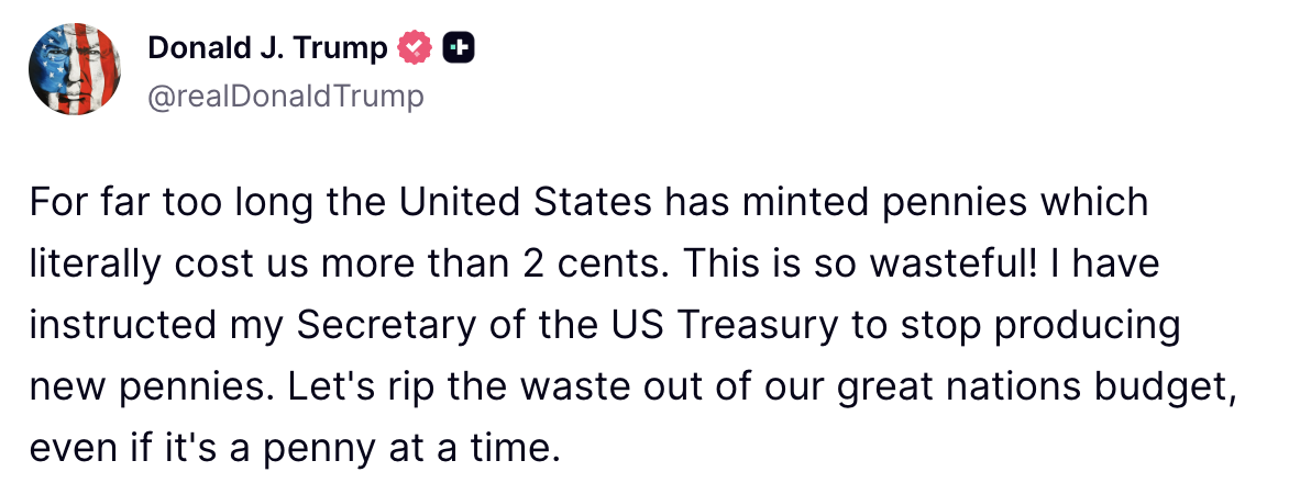 The Department of Government Efficiency, more commonly known as DOGE, made a post on X on January 21, saying, “The penny costs over 3 cents to make and cost US taxpayers over $179 million in FY2023. The Mint produced over 4.5 billion pennies in FY2023, around 40% of the 11.4 billion coins for circulation produced.”