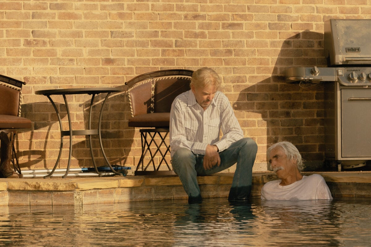 Tommy goes outside to take in this news when he hears his father’s voice, but couldn’t see where it was coming from. The camera pans to TL (Sam Elliott) sitting on the steps in the pool, and revealed that he fell in, but because of the arthritis in his knees and hips, he couldn’t muster up the strength to get himself out. At least he got himself to the steps!
