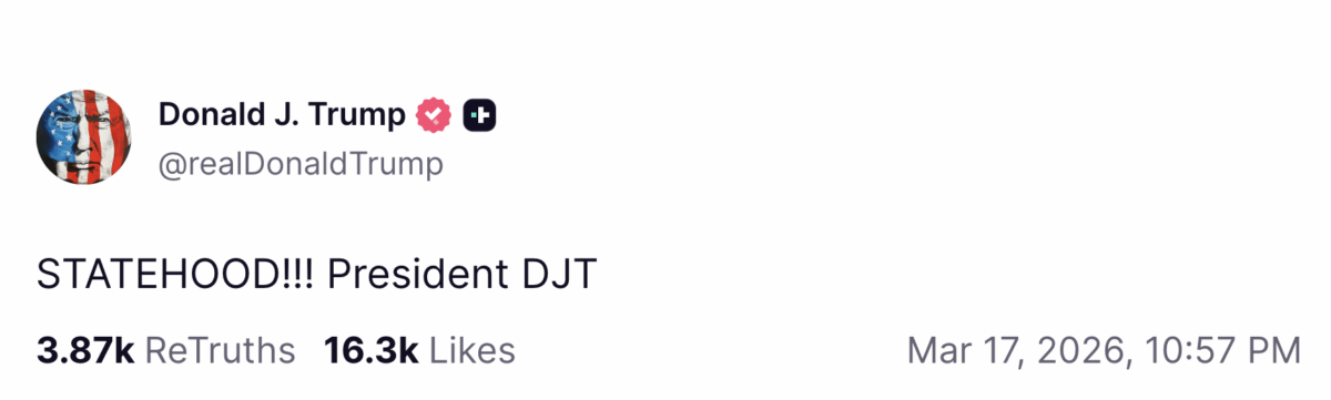 Responding to this loss, Trump simply posted on Truth Social, “STATEHOOD!!!”