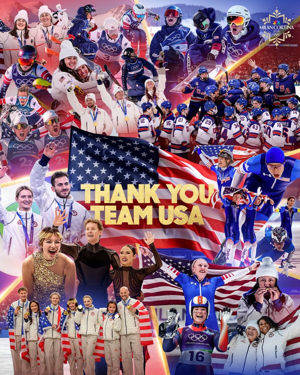 The official list of Team USA’s gold medals at the 2026 Winter Olympics includes: