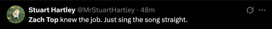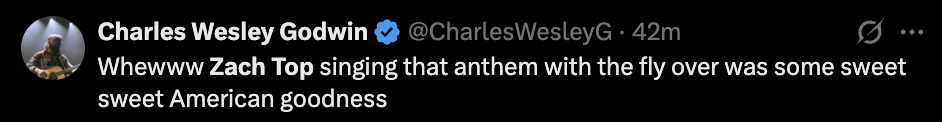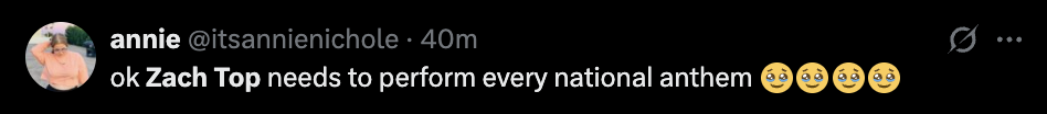 See some of our favorite reactions to Zach Top’s national anthem performance below: